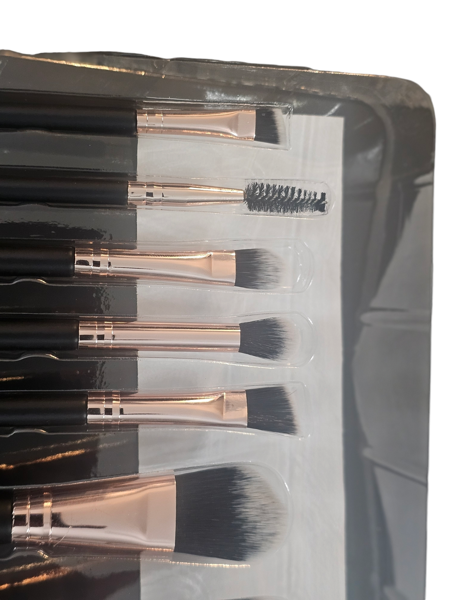 The 10-Pack Black Handle and Rose Gold Makeup Brush Set is your all-in-one beauty essential for effortless, flawless application. Whether you're blending foundation, perfecting your contour, or adding the final touches to your eyeshadow, this versatile set has every brush you need—all in one stunning collection.